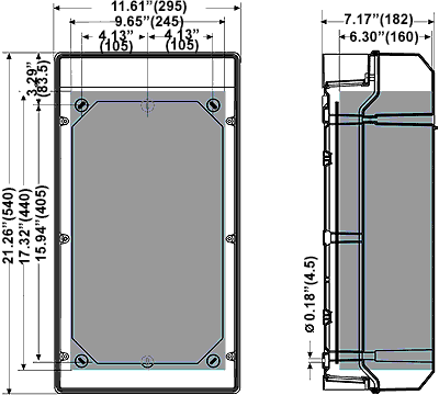 Useable Space: (W) 9.65"(245) x (H) 17.32"(440) x (D) 6.3" (160) mm