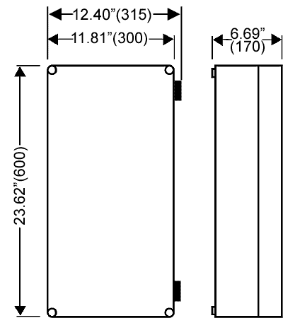 Mi 9421, Empty Enclosure, Hinged, Housing/Lid: Polycarbonate (Opaque), Type NEMA 4x, (IP65) Useable Space: (W) 10.83"(275) x (H) 22.64"(575) x (D) 5.75" (146) with Opaque Lid