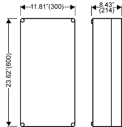 Mi 0411, Empty Enclosure, Housing/Lid: Polycarbonate (Opaque), Type NEMA 4x, (IP65) Useable Space: (W) 10.83"(275) x (H) 22.64"(575) x (D) 7.52" (191) with Opaque Lid