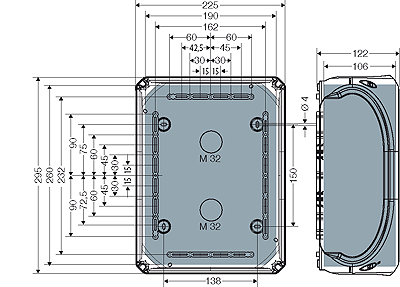 wall surface can be drilled individually for cable entry max. M 50