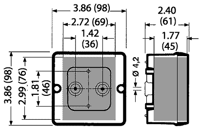 D 9045, Liquid Tight Polystrene Enclosure (Indoor Installation), from 16 - 14 AWG 3 phase, 10 AWG 1 phase, 5-pole, with Terminal Block Dimensions: (W) 3.90"(98) x (H) 3.90"(98) x (D) 2.40"(61)